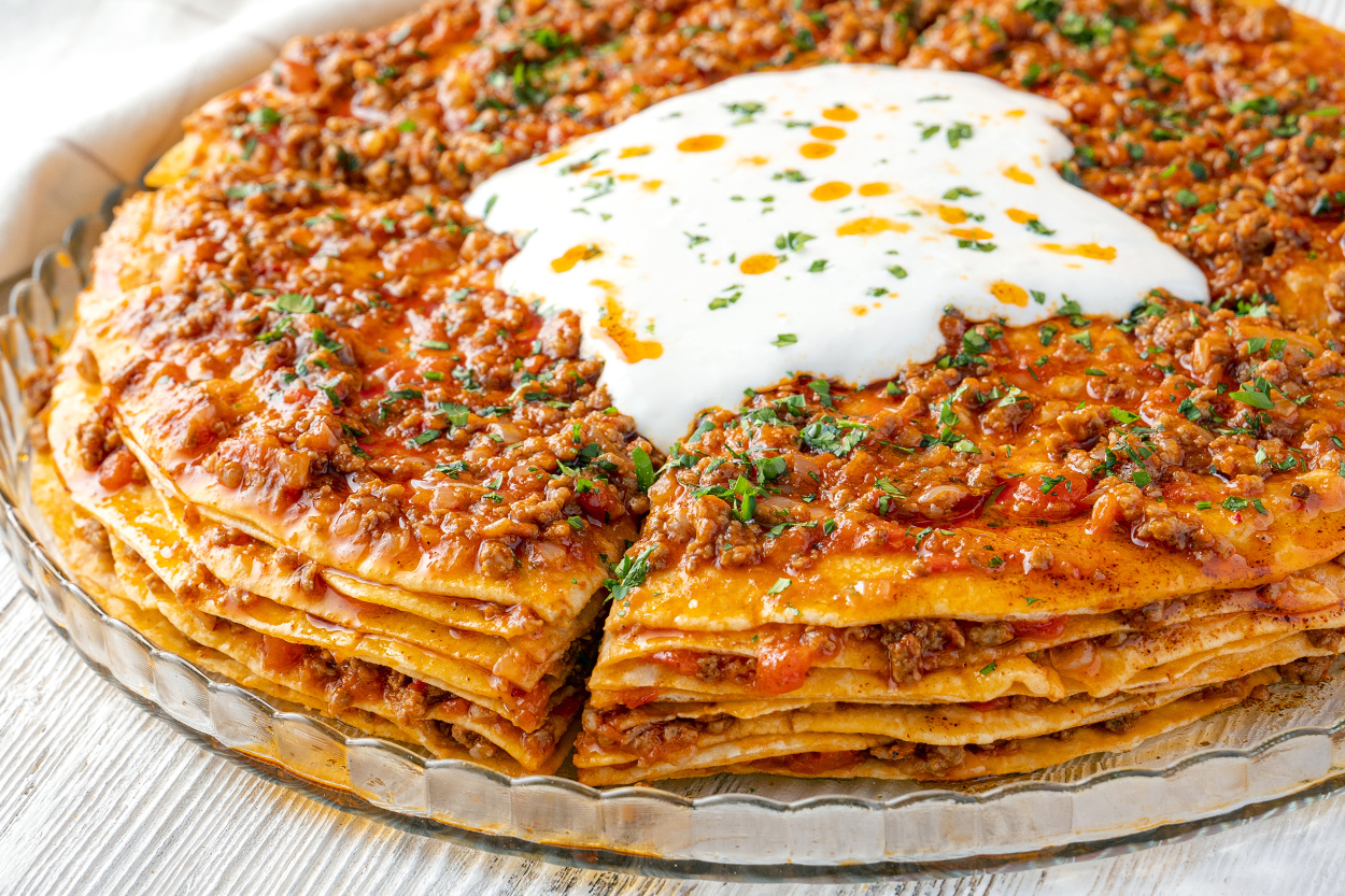 - Tüm katları tamamladıktan sonra 4 dilim olacak şekilde kes.